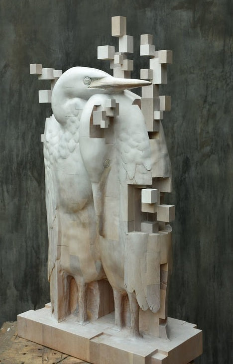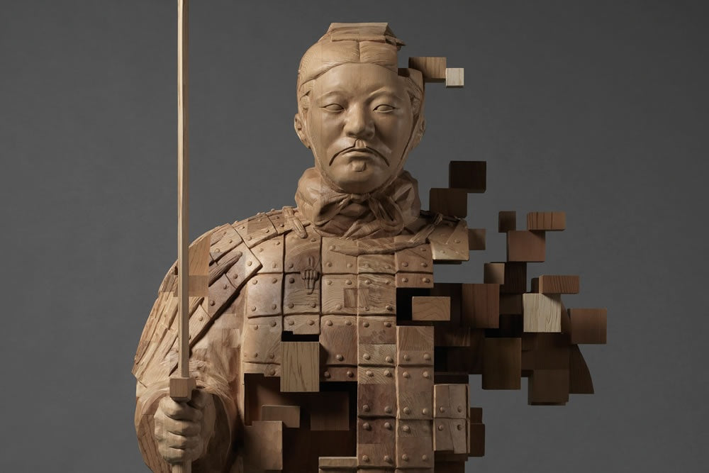 What sets Hsu Tung Han apart is his remarkable "pixelated" effect achieved through a unique approach to working with wood. His creative process begins with intricate sketches and clay models, which serve as the blueprint for his masterpieces. What follows is a painstaking endeavor in which he sculpts dynamic motion from a single piece of wood.